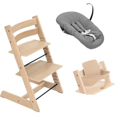 StokkeĀ® Tripp TrappĀ® Bundle Treppenhochstuhl Eiche inkl. Newbornset light grey & Babyset